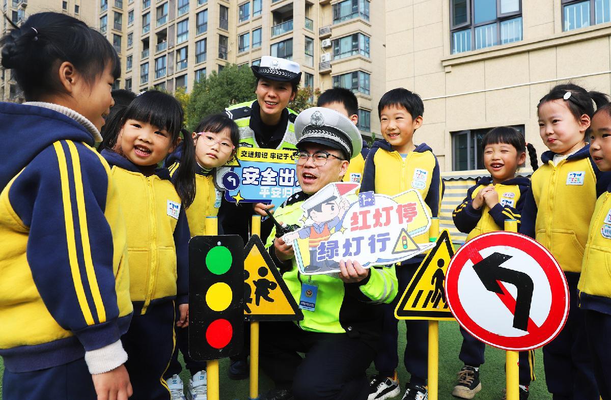 12月2日,浙江省臺(tái)州市公安局交通警察局直屬三大隊(duì)三中隊(duì)民警在桐嶼街道中心幼兒園向小朋友們普及交通安全知識(shí)。