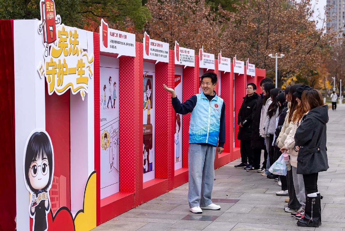 12月2日,江蘇省南京師范大學(xué)泰州學(xué)院組織學(xué)生參觀學(xué)習(xí)憲法知識(shí)宣傳展板。