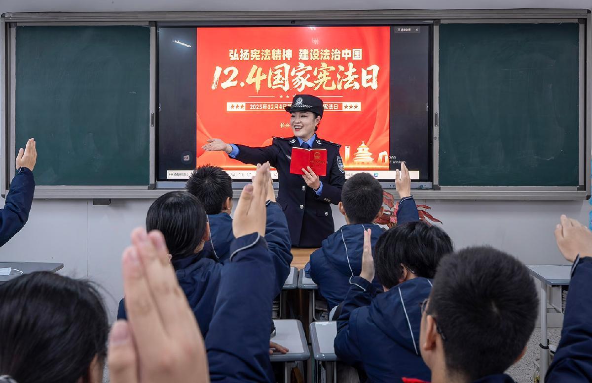 12月2日,安徽省蕪湖市公安局鏡湖分局民警走進(jìn)校園,開(kāi)展“國(guó)家憲法日”宣傳。