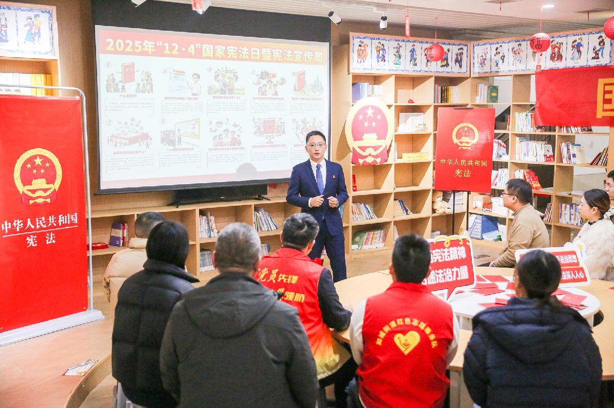 12月2日,在江蘇省如皋市如城街道城西社區(qū),律師向居民宣講憲法知識(shí)。