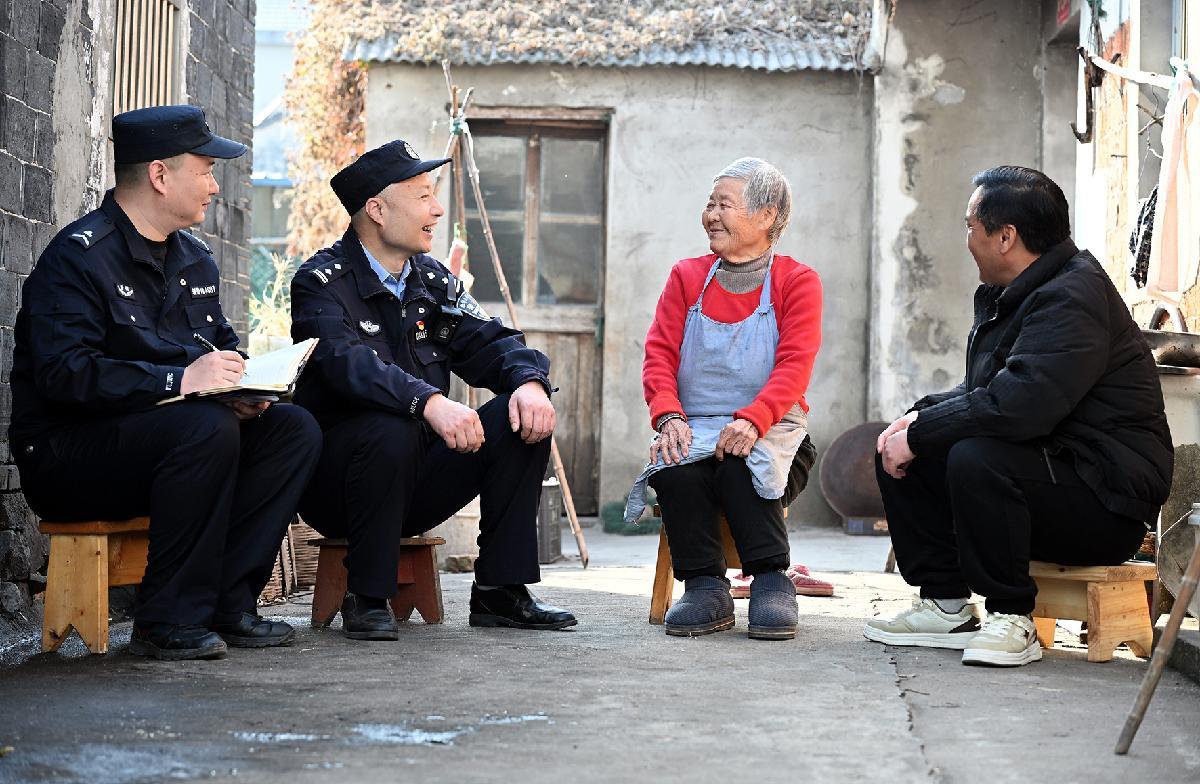 12月16日,安徽省馬鞍山市當(dāng)涂縣公安局湖陽派出所民警輔警走訪轄區(qū)群眾,宣傳冬季安全防范知識。