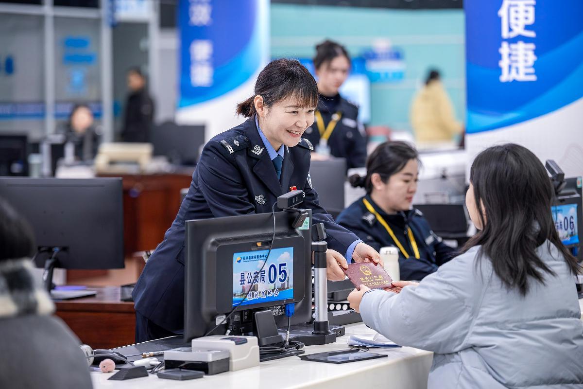 圖為1月4日,辦證窗口民警午間為預(yù)約群眾辦理業(yè)務(wù)。