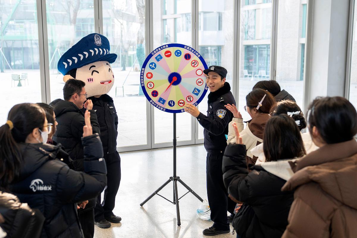 圖為民警與學(xué)生們開(kāi)展交通安全知識(shí)有獎(jiǎng)問(wèn)答。