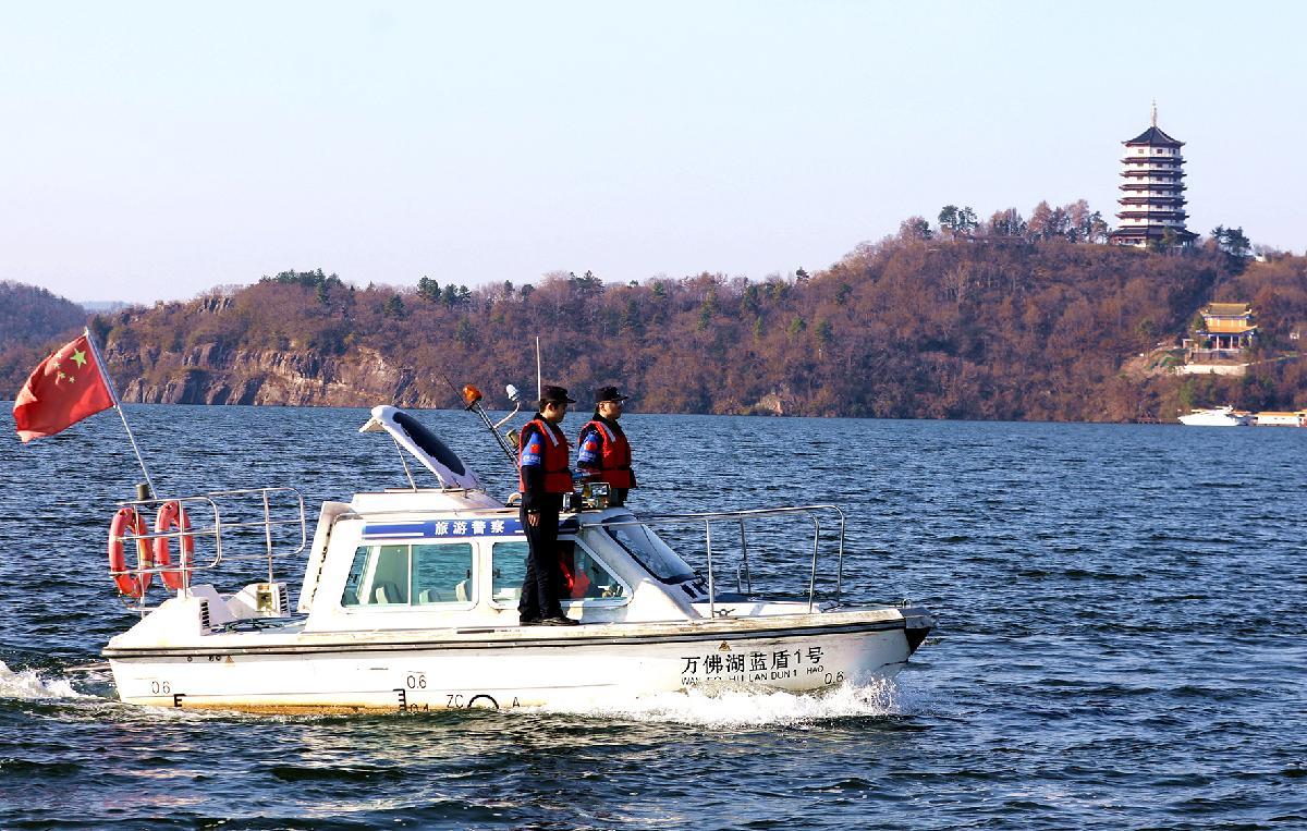 圖為1月7日,旅游度假區(qū)派出所組織警力在風(fēng)景秀麗的萬佛湖巡航。