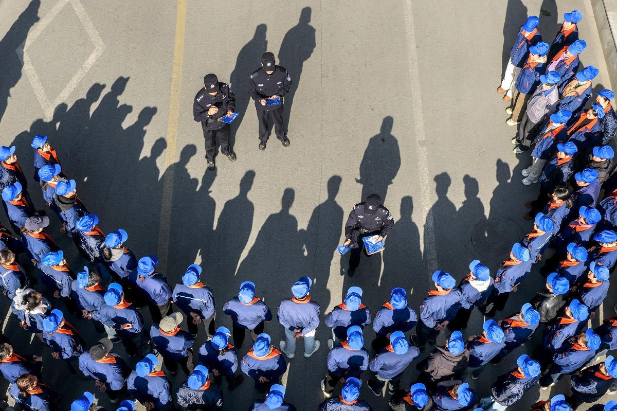 圖為1月13日,民警在一家企業(yè)進(jìn)行反詐、安全生產(chǎn)等知識宣講。