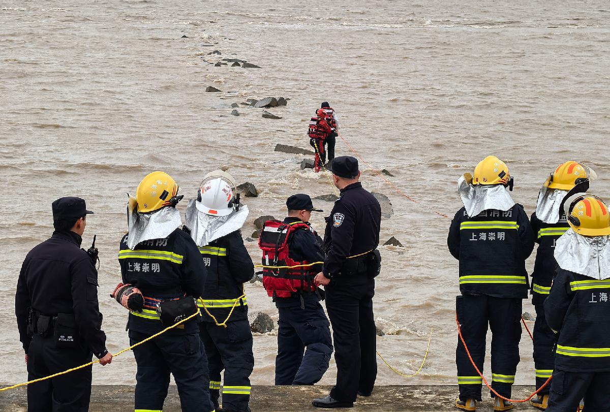 1月19日下午,上海市公安局崇明分局橫沙派出所民警聯(lián)合消防部門在東灘1號(hào)水閘附近合力救助了一名因漲潮被困江堤的游客。