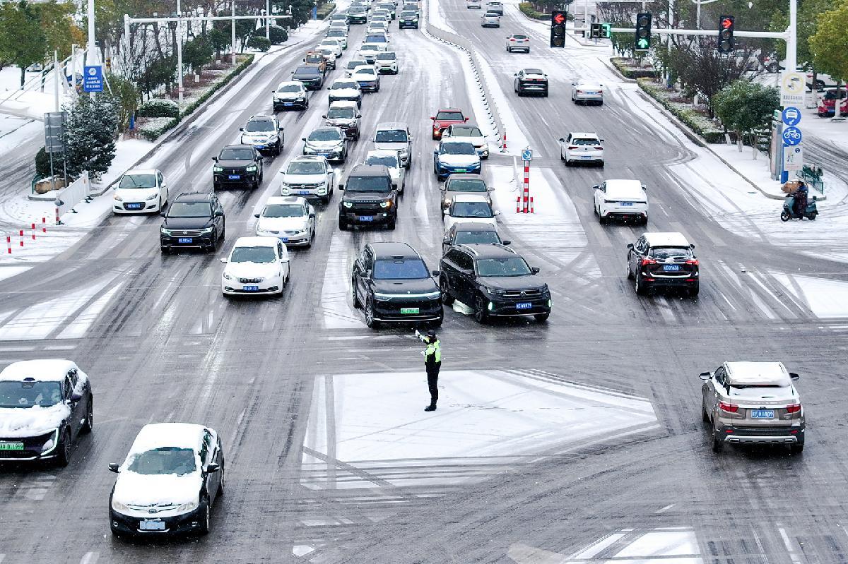 1月20日,安徽省舒城縣迎來入冬最強降雪。舒城縣公安局交管大隊顯性用警,在轄區(qū)重點路段、路口、橋梁等處指揮疏導交通,主動為民紓困,全力保障路面安全暢通。