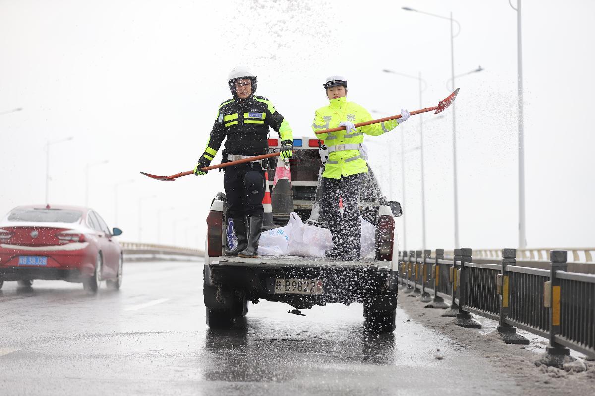 1月20日,安徽省巢湖市公安局交管大隊全警動員,全力應對降雪、結(jié)冰天氣,加強路面交通安全管理,確保安全暢通。