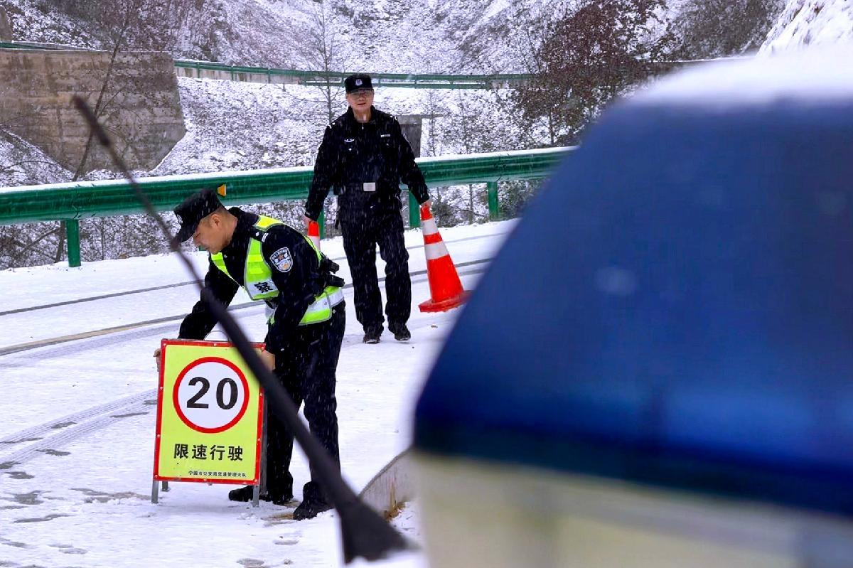 1月20日,安徽省涇縣出現(xiàn)降雪降溫天氣。涇縣公安局交管大隊組織警力加強S345省道巡邏疏導,全力保障路面安全暢通。