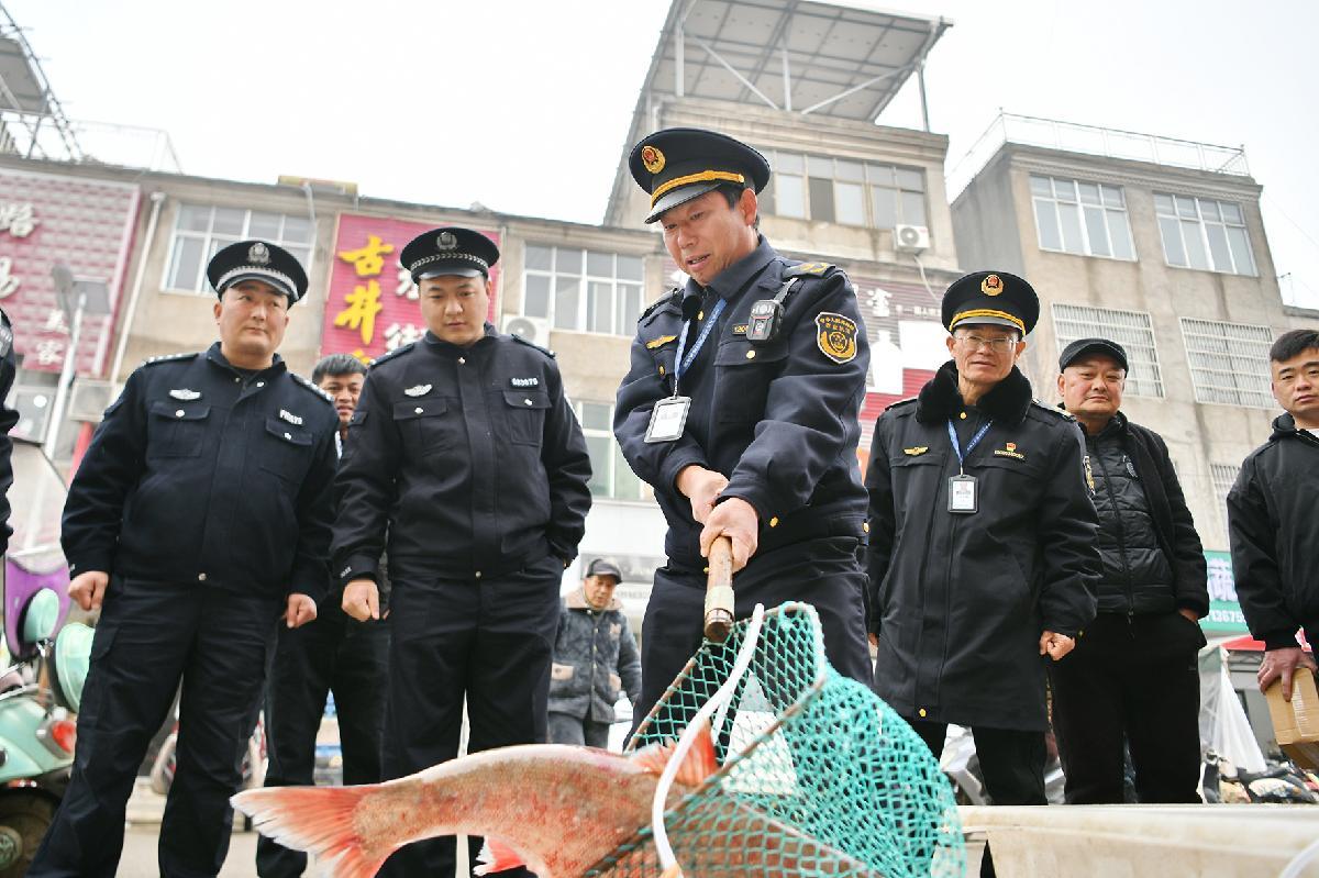 春節(jié)臨近,安徽省阜南縣農(nóng)業(yè)農(nóng)村局聯(lián)合公安局、市場(chǎng)監(jiān)督管理局等部門對(duì)轄區(qū)農(nóng)貿(mào)市場(chǎng)、超市和餐飲企業(yè),開展原料采購(gòu)溯源、生產(chǎn)加工流程和淮河禁捕魚類監(jiān)督檢查,守護(hù)群眾節(jié)日“舌尖上的安全”。