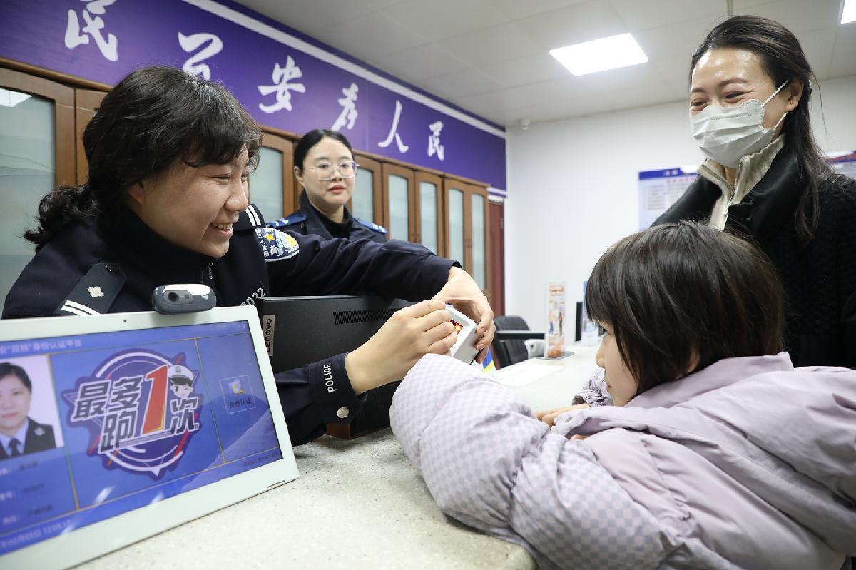圖為2月5日,民輔警利用午間為群眾提供延時(shí)服務(wù)辦理戶籍業(yè)務(wù)。