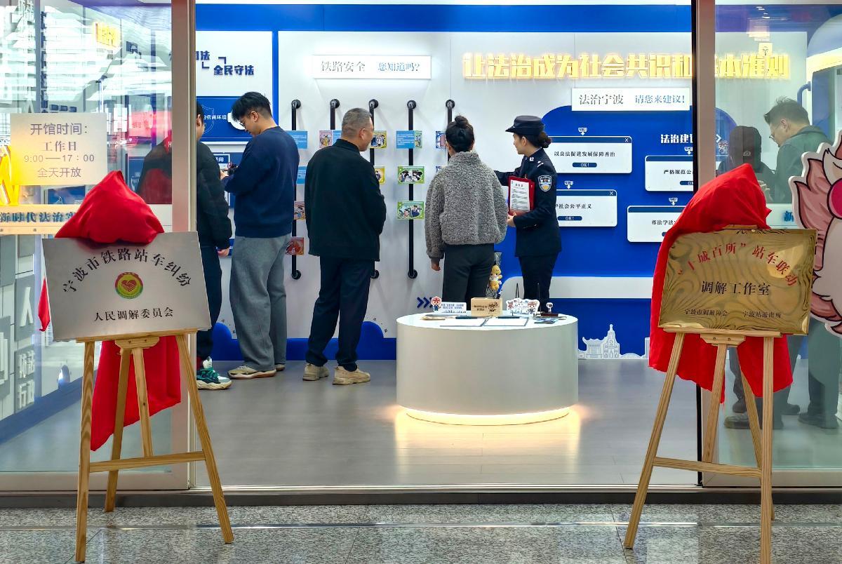 2月5日,浙江省寧波火車站“十城百所”站車聯(lián)動(dòng)調(diào)解工作室正式揭牌成立。工作室由寧波市調(diào)解協(xié)會(huì)、寧波站派出所聯(lián)合組建,是全國(guó)首個(gè)鐵路樞紐法治實(shí)踐陣地的重要組成部分。