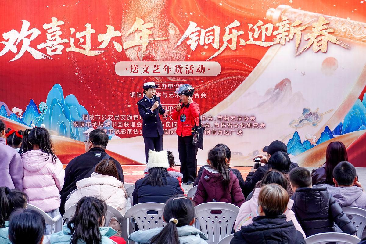 2月11日,安徽省銅陵市公安局交管支隊宣傳民警在“歡喜過大年 銅樂迎新春”銅都文藝集市活動現(xiàn)場,通過交通安全有獎競答、宣傳展臺講解、警民共創(chuàng)平安春聯(lián)等形式,將安全出行知識融入新春祝福,讓市民在喜慶氛圍中提升交通安全意識,共度平安祥和春節(jié)。