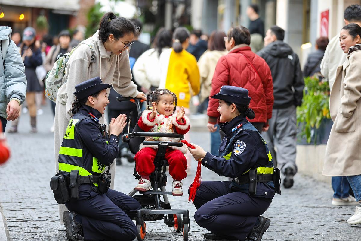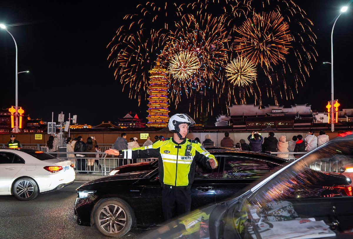 2月17日,浙江省臺州市公安局黃巖分局民警堅守崗位,做好巡邏防控、景區(qū)值守、安全檢查等各項工作,守護(hù)群眾度過一個歡樂祥和的春節(jié)。