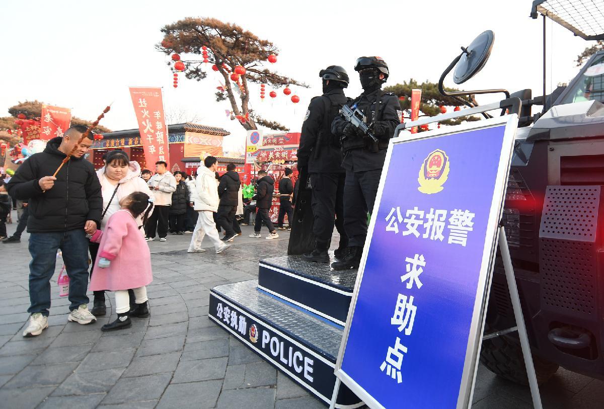 2月17日,河南省浚縣公安局民輔警在古城景區(qū)定點執(zhí)勤。