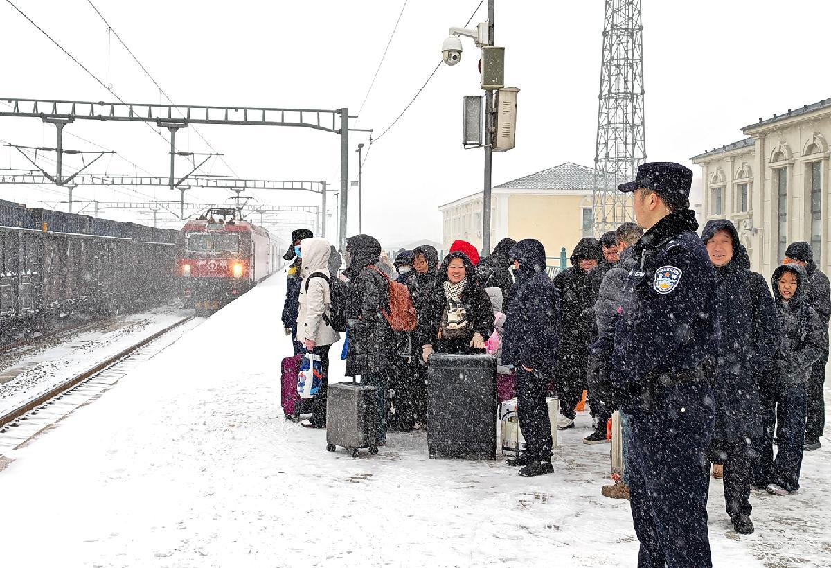 2月22日,吉林省白城市迎來降雪天氣。沈陽鐵路公安局白城公安處以雪為令,啟動惡劣天氣應(yīng)急處置預(yù)案,全面強(qiáng)化站車秩序維護(hù)、線路治安巡查工作,確保旅客乘車安全、管內(nèi)線路暢通。