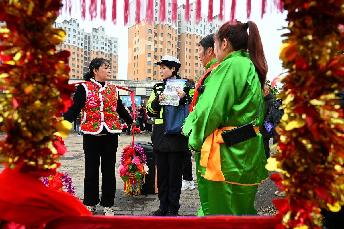 3月2日,山西省稷山縣公安局交通管理大隊(duì)組織民輔警走進(jìn)社火活動(dòng)現(xiàn)場(chǎng),扎實(shí)開(kāi)展“美麗鄉(xiāng)村行”交通安全宣傳。