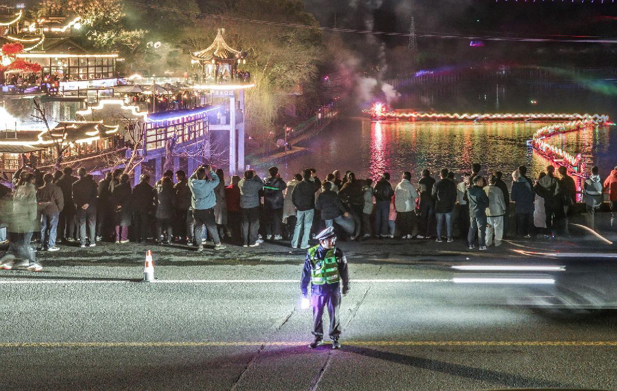 3月3日,安徽省涇縣公安局民警在2026元宵民俗巡游展演活動(dòng)現(xiàn)場(chǎng)維持秩序。
