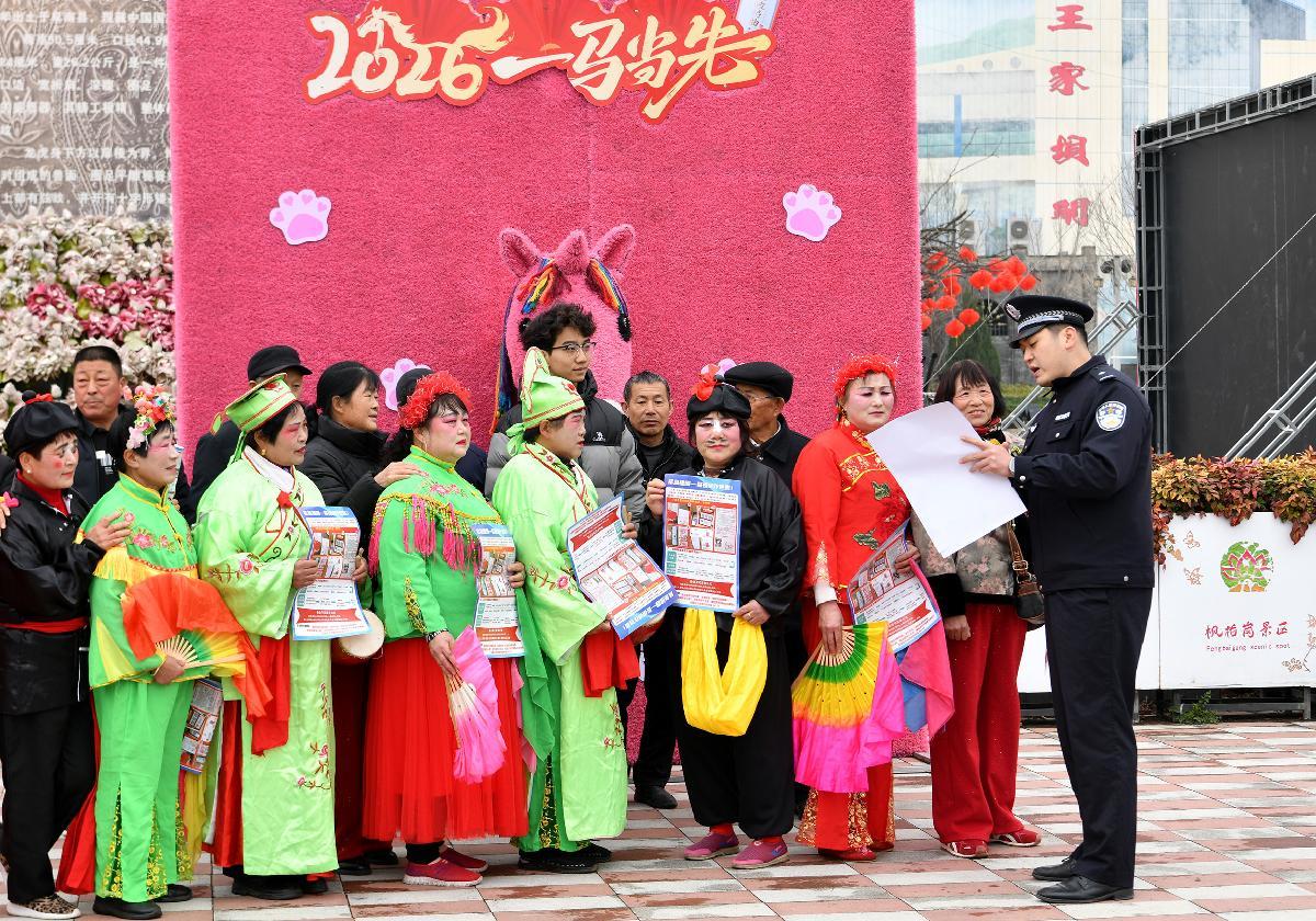3月3日,安徽省阜南縣公安局反電詐中心民輔警在地城鎮(zhèn)楓柏崗景區(qū)元宵民俗游樂(lè)會(huì)現(xiàn)場(chǎng)為群眾宣講防范網(wǎng)絡(luò)電信詐騙知識(shí)。