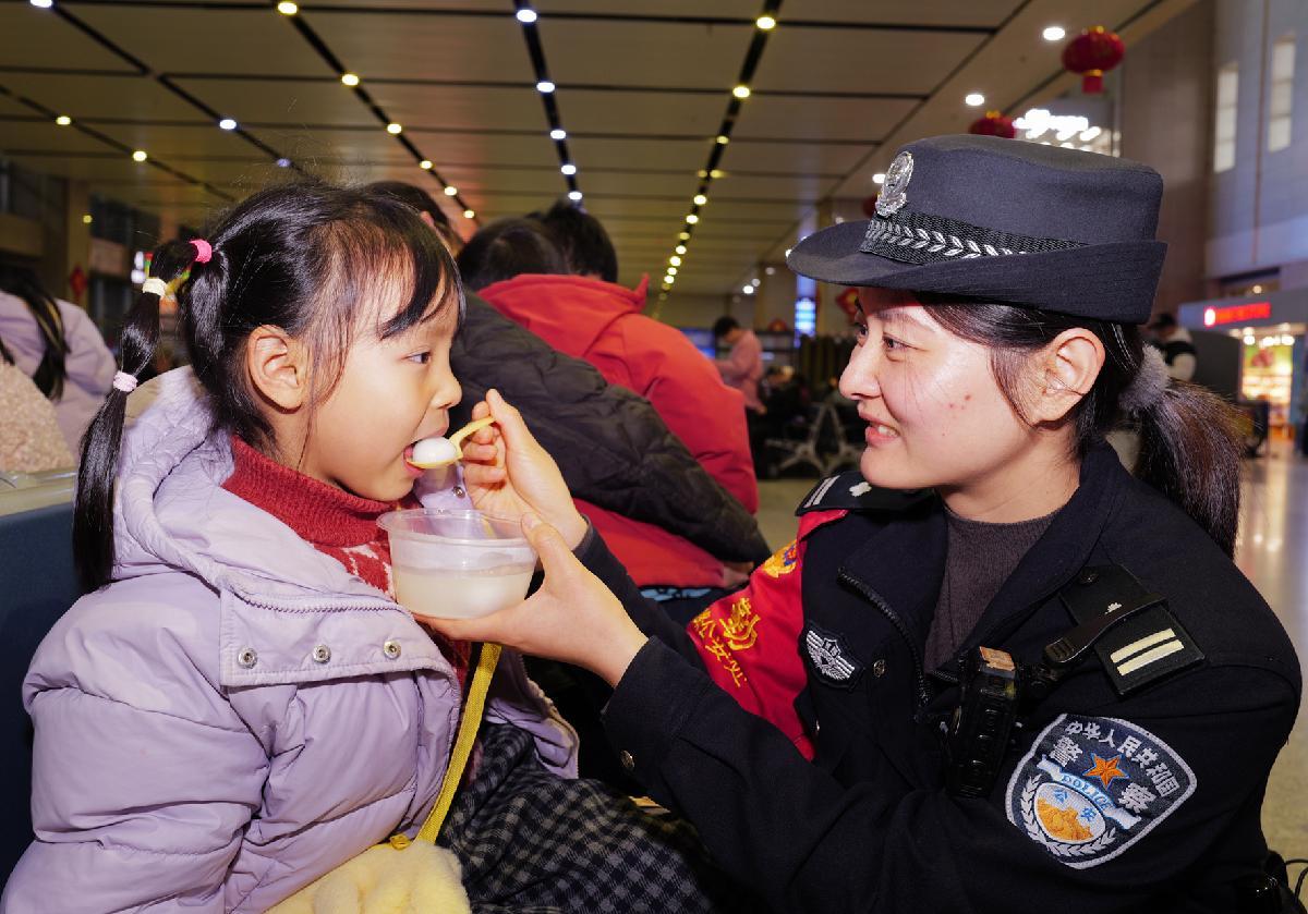3月2日,湖北宜昌東站迎來(lái)了春運(yùn)返程客流高峰。襄陽(yáng)鐵路公安處宜昌東站派出所組織民警做好服務(wù)保障工作的同時(shí),將一碗碗熱氣騰騰的湯圓送到旅客手中,共同迎接元宵佳節(jié)的到來(lái)。