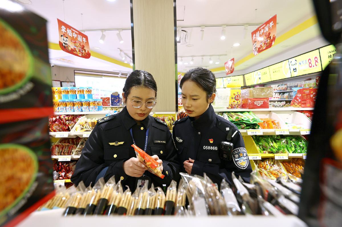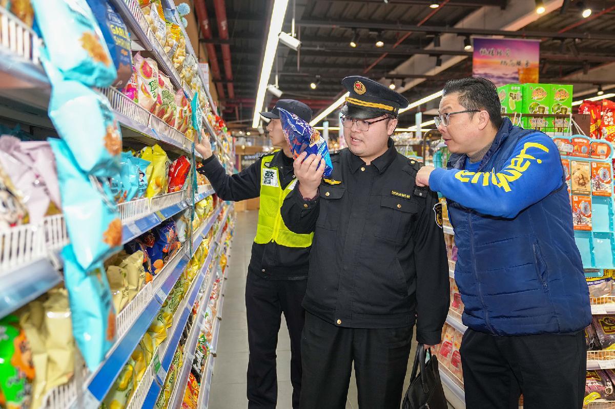 3月13日,上海市公安局崇明分局城橋派出所民警聯(lián)合城橋鎮(zhèn)市場監(jiān)管所工作人員在轄區(qū)商超開展食品安全檢查。
