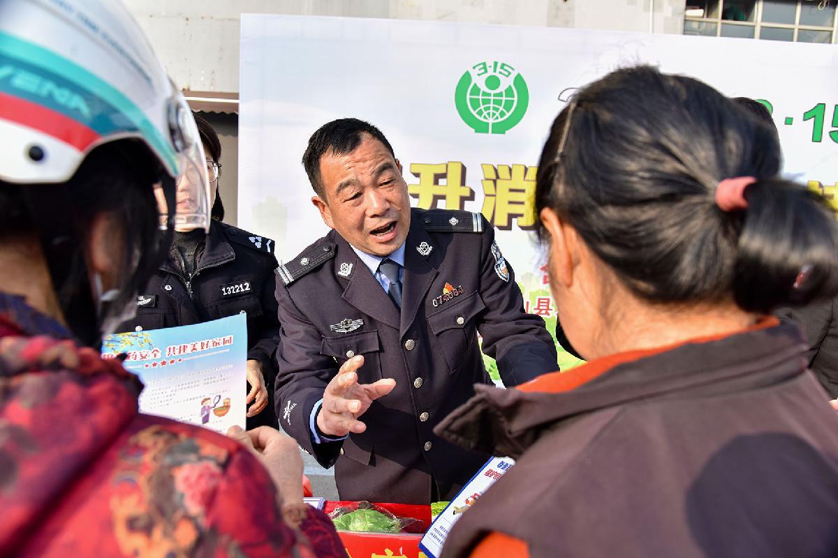 3月15日,浙江省臺州市路橋區(qū)橫街鎮(zhèn)市場監(jiān)督管理所工作人員為群眾宣講消費維權(quán)知識。