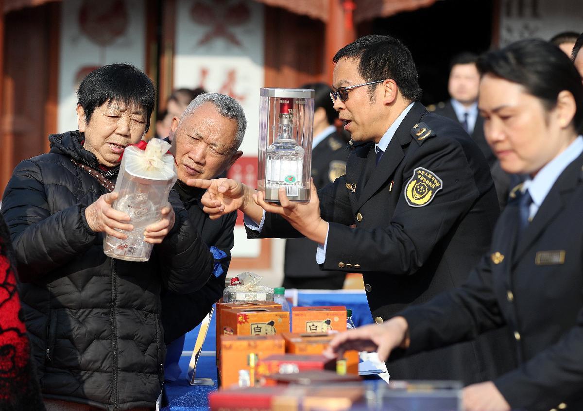 圖為荊門市市場監(jiān)督管理局工作人員向群眾傳授實(shí)用“打假秘籍”。