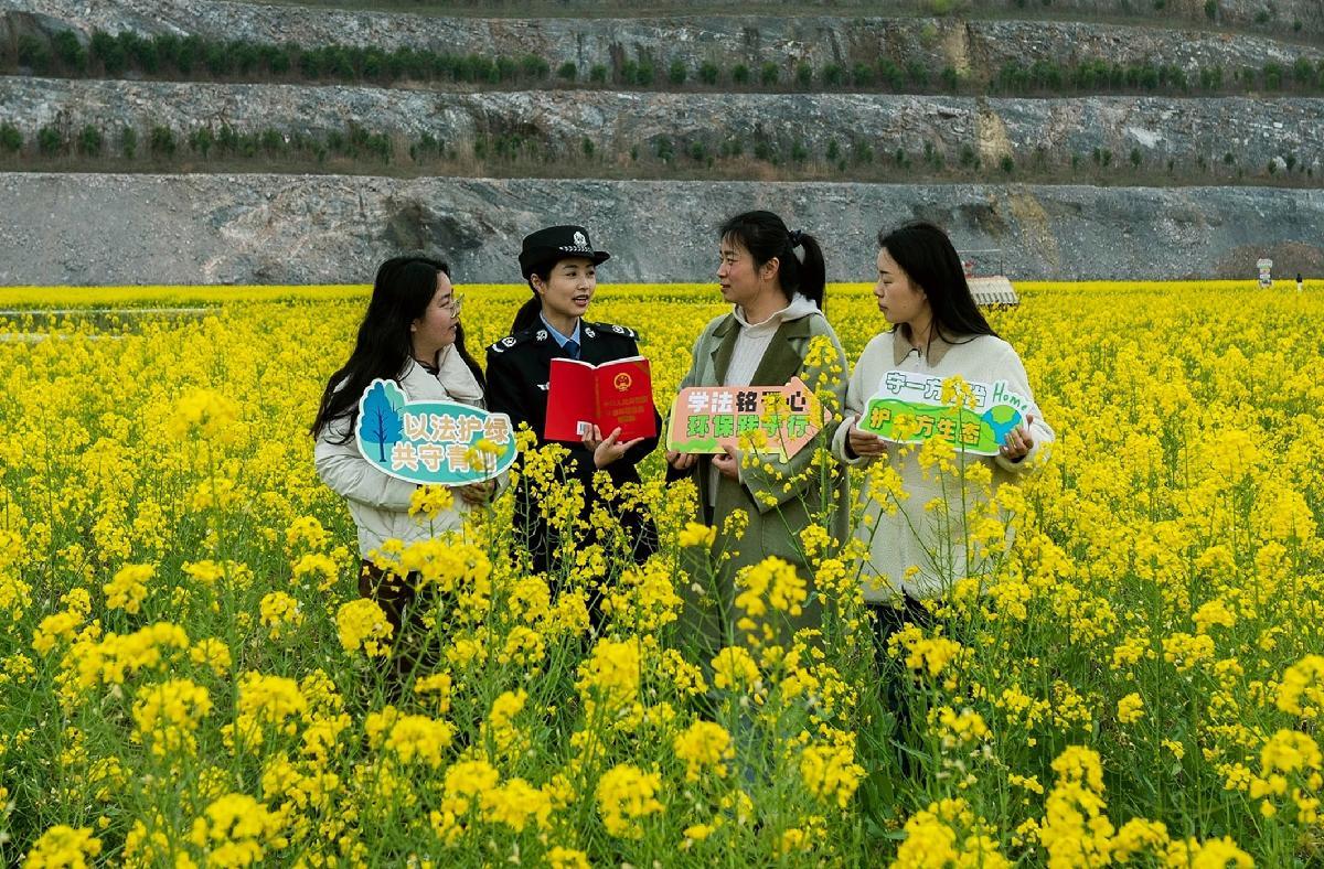 3月23日,安徽省含山縣司法局依托廢棄礦坑修復(fù)而成的仙蹤鎮(zhèn)大山尾礦坑公園,在油菜花地開展“法治護(hù)航 環(huán)境共治共享”主題普法宣傳。