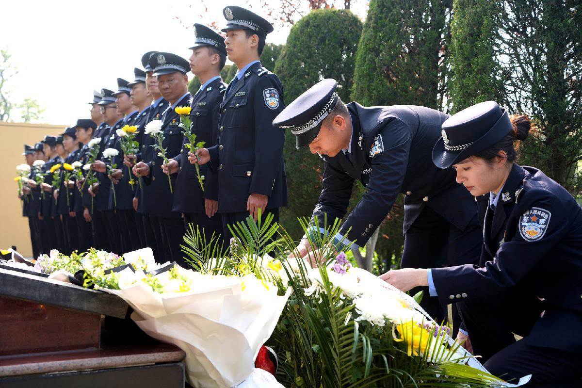 4月2日,安徽省濉溪縣公安局組織青年民警開(kāi)展清明祭奠活動(dòng)。