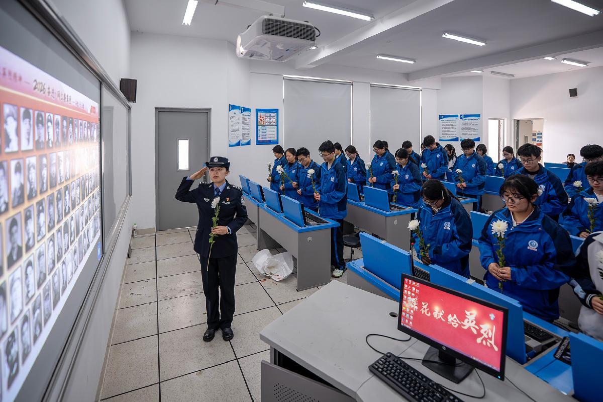 4月1日,浙江省長(zhǎng)興縣公安局?jǐn)y手太湖高級(jí)中學(xué)開(kāi)展“網(wǎng)上祭英烈”活動(dòng)。