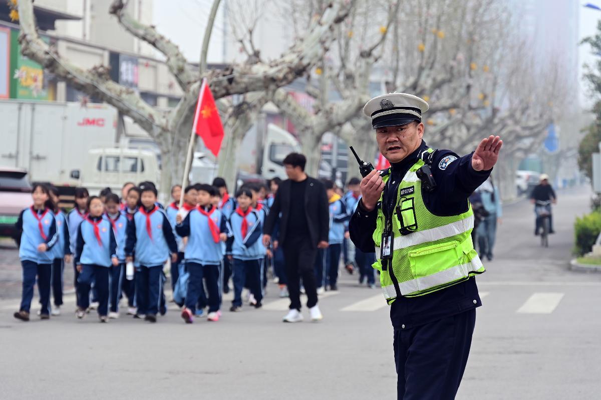 3月31日,安徽省固鎮(zhèn)縣第五小學組織學生到城西公園春游。固鎮(zhèn)縣公安局交管大隊組織警力在沿途各路口指揮疏導交通,確保師生安全。