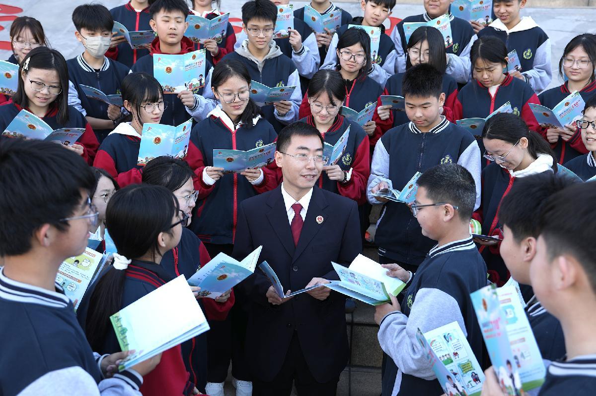 3月30日,江蘇省徐州市鼓樓區(qū)人民法院法官在第二十四中學(xué)為學(xué)生講解如何防范欺凌行為,增強(qiáng)學(xué)生安全防范意識和自我保護(hù)能力。