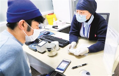 1月7日,上海市部分社區(qū)預(yù)防接種門(mén)診開(kāi)始為因私出國(guó)工作、學(xué)習(xí)人員提供新冠疫苗預(yù)約緊急接種服務(wù)。自2021年1月7日0時(shí)起,上海市民可通過(guò)“健康云”APP在線24小時(shí)登記和預(yù)約。圖為上海市徐匯區(qū)康健街道社區(qū)衛(wèi)生服務(wù)中心醫(yī)務(wù)人員向接種者展示疫苗品名和有效期等信息。
