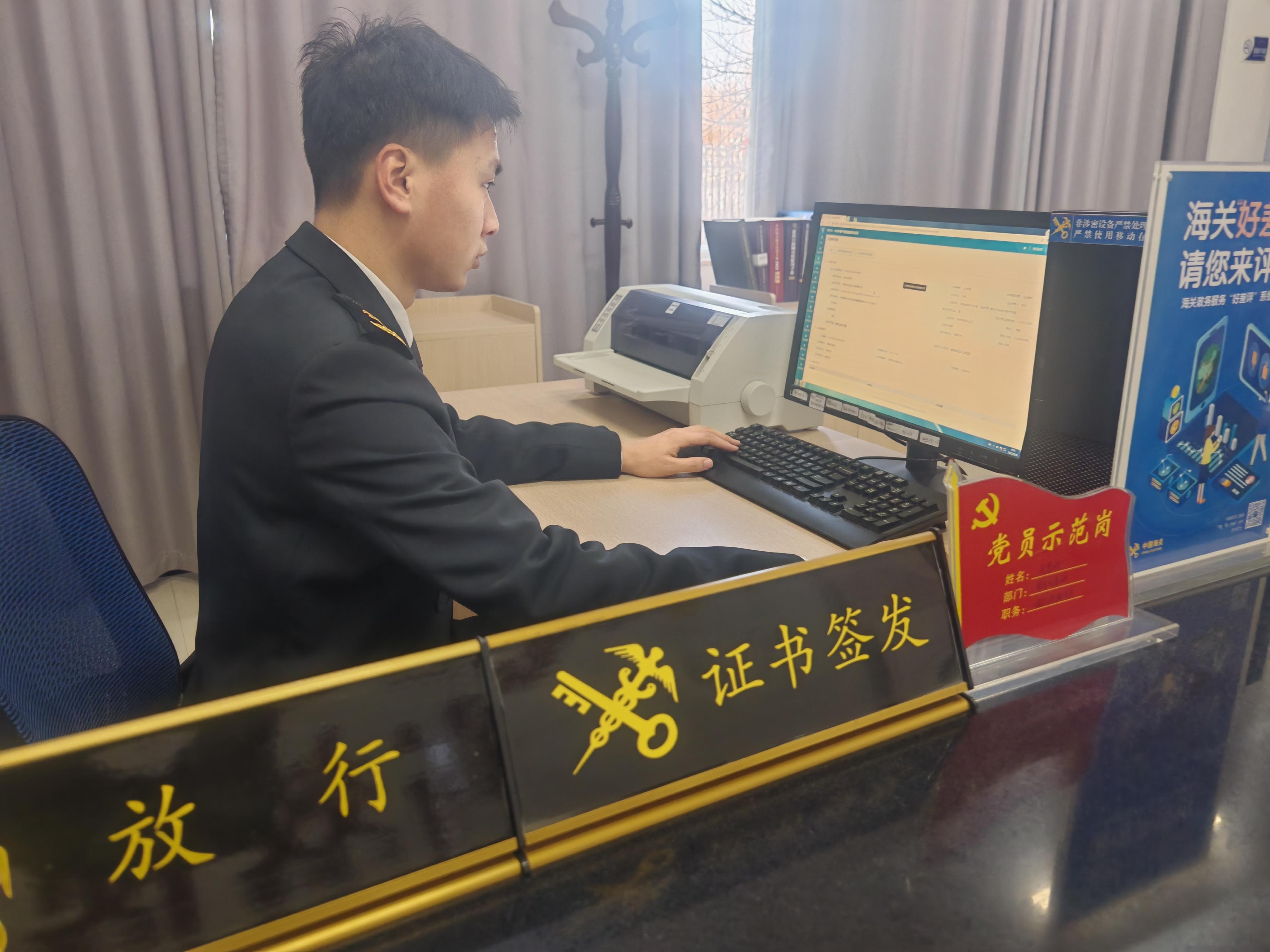 “我們通過電腦端發(fā)出申請(qǐng),海關(guān)工作人員在線審核后我們即可自助打印證書并及時(shí)郵遞給國(guó)外客戶,不用親自去海關(guān)辦事窗口,節(jié)省了至少1天的時(shí)間和往返300多公里的工作成本,我們衷心為海關(guān)推出的‘企業(yè)自助打印業(yè)務(wù)’點(diǎn)贊?!惫现莺率狭5擂r(nóng)業(yè)發(fā)展有限責(zé)任公司負(fù)責(zé)人郝宇說。