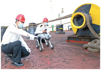 近日,南京海關(guān)所屬揚州海關(guān)聯(lián)合杭州宇樹科技有限公司探索輪足式機器人在入出境船舶智慧查驗領(lǐng)域應(yīng)用,并首次上船嘗試開展相關(guān)查驗。通過深度融合人工智能與機器人技術(shù),加快推進(jìn)危化品智能識別系統(tǒng)與檢疫處理效能評估體系建設(shè),為實現(xiàn)海關(guān)業(yè)務(wù)流程優(yōu)化再造、監(jiān)管作業(yè)全面升級提供更多優(yōu)質(zhì)方案。圖為海關(guān)關(guān)員在船舶甲板測試“機器狗”機動性和通過性。