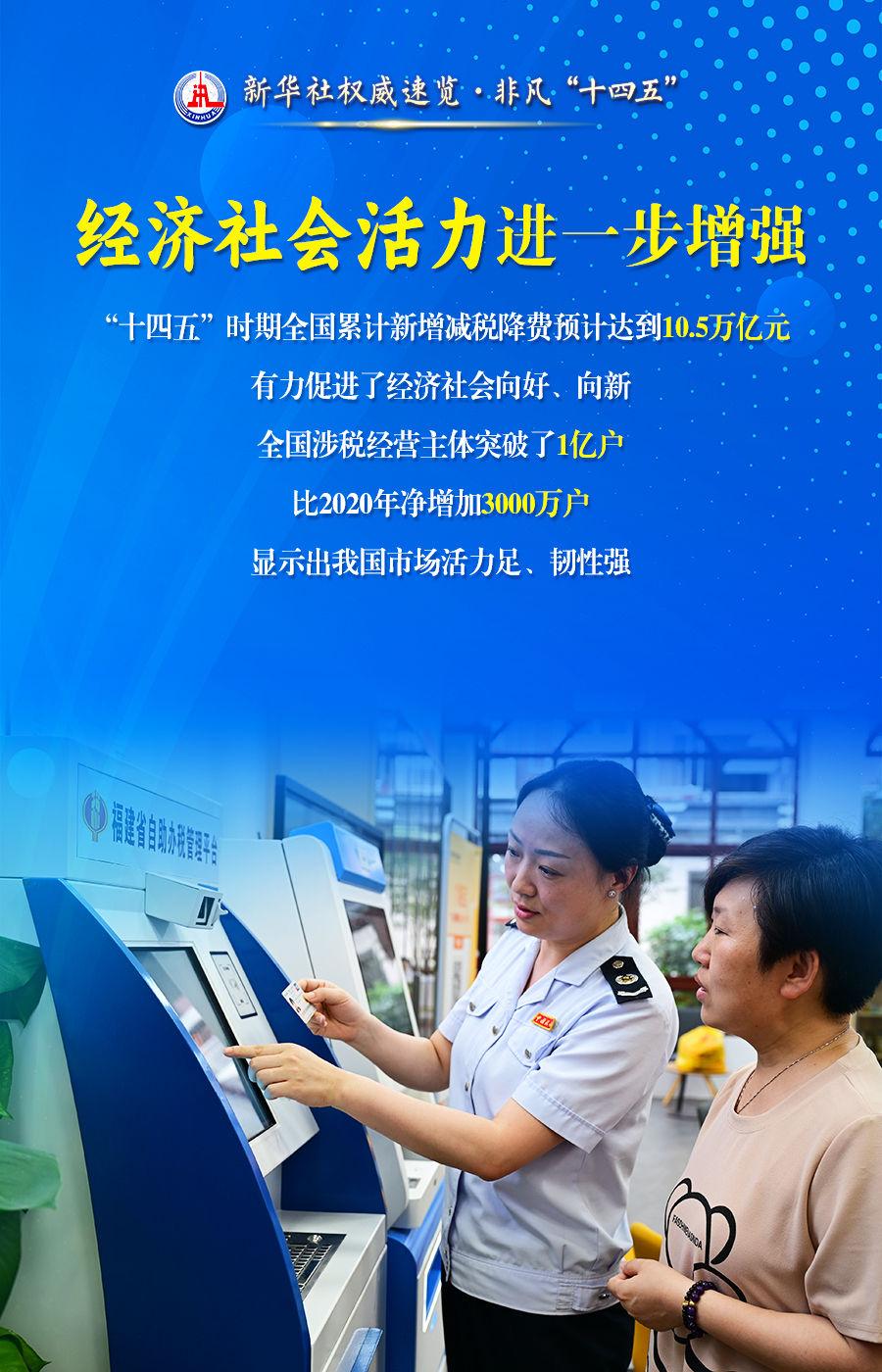 財(cái)力基礎(chǔ)進(jìn)一步壯大、經(jīng)濟(jì)社會(huì)活力進(jìn)一步增強(qiáng)、市場(chǎng)營商環(huán)境進(jìn)一步優(yōu)化……28日舉行的“高質(zhì)量完成‘十四五’規(guī)劃”新聞發(fā)布會(huì)上,國家稅務(wù)總局局長胡靜林說,“十四五”時(shí)期,我國稅收改革發(fā)展取得積極成果。通過這組海報(bào),一起來看看。
