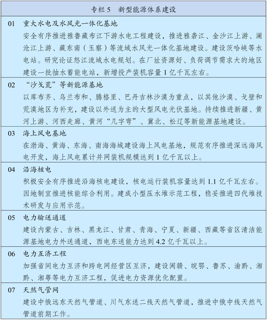 堅持立足國內(nèi)、補齊短板、多元保障、強化儲備,加強能源產(chǎn)供儲銷體系建設。堅持油氣核心需求自主保障,實施中長期油氣增儲上產(chǎn)戰(zhàn)略行動,確保原油年產(chǎn)量穩(wěn)定在2億噸左右、天然氣產(chǎn)量穩(wěn)步增長,加強煤制油氣產(chǎn)能和技術儲備。強化政府儲備和企業(yè)儲備協(xié)同,提升國家石油儲備規(guī)模,建立更加靈活的輪換動用機制,增強天然氣儲備調(diào)節(jié)保障能力,完善煤炭儲備體系。健全能源保供中長期合同制度,完善電力應急調(diào)度機制和備用電源配置,強化能源需求側管理。加強戰(zhàn)略性礦產(chǎn)資源勘探開發(fā)和儲備,深入實施新一輪找礦突破戰(zhàn)略行動,統(tǒng)籌加強產(chǎn)品、產(chǎn)能和產(chǎn)地儲備,推動大宗商品儲運基地建設,提升戰(zhàn)略性礦產(chǎn)資源安全風險監(jiān)測預警和應急保供水平。加強能源資源開發(fā)國際合作,維護戰(zhàn)略通道安全。