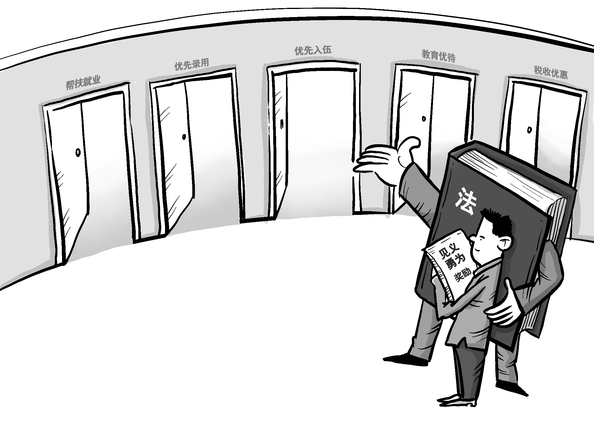《條例》明確,見義勇為人員就業(yè)困難的,由人力社保部門優(yōu)先介紹就業(yè)。對因見義勇為死亡、致殘的人員,所在區(qū)縣(自治縣)殘聯(lián)、人力社保等部門應當優(yōu)先幫扶其共同生活的近親屬就業(yè)。見義勇為人員或者其配偶、父母、子女申請從事個體經(jīng)營的,有關(guān)部門應當給予優(yōu)先辦理證照等優(yōu)待,依法落實稅費減免等優(yōu)惠政策。