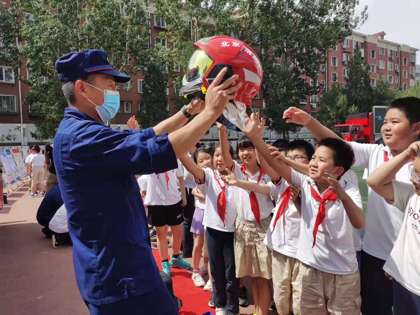 近日,北京石景山消防救援支隊走進石景山區(qū)第二實驗小學,開展消防宣傳進校園活動。消防宣傳員向同學們講解了消防安全常識,并組織全體師生體驗了“火場逃生”情境。圖為同學們爭相試戴消防頭盔。