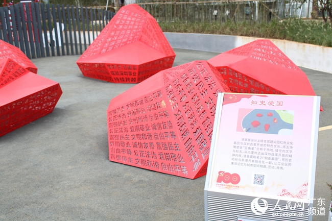 八卦嶺工業(yè)區(qū)黨建公園位于福田區(qū)八卦路72號中發(fā)大廈,由室外公園和室內(nèi)展廳兩部分組成。其中,室外公園占地約1200平方米,依次排列著“知史愛國”“知史愛黨”“以史明志”“以史為鏡”四個藝術(shù)裝置互動區(qū),充分展現(xiàn)40年來八卦嶺工業(yè)區(qū)的發(fā)展史。