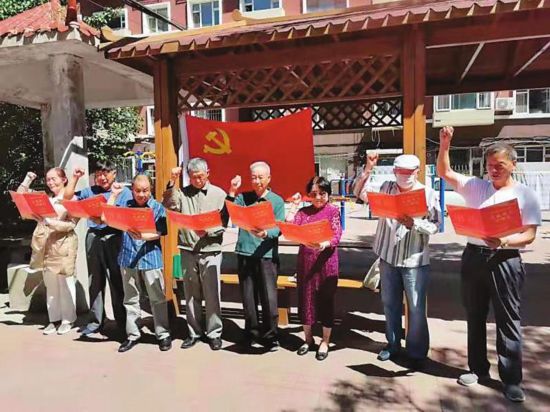 建黨百年之際,東北師范大學(xué)環(huán)境學(xué)院的離退休老黨員開展重溫黨的誓言活動。(記者吳茗 攝)