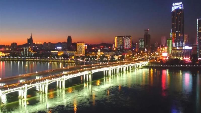 夜色下,伴隨著《讓黨旗高高飄揚(yáng)》、《唱支山歌給黨聽》、《不忘初心》等10首精心編排的紅歌旋律,松花江音樂噴泉噴出道道水柱,燈光照耀下,五彩繽紛,翩翩起舞,交織出一幅幅壯美的畫卷。北山公園、吉林大橋、臨江門大橋等重點(diǎn)場(chǎng)所點(diǎn)位一片璀璨,營造了慶祝建黨百年的濃厚氛圍。