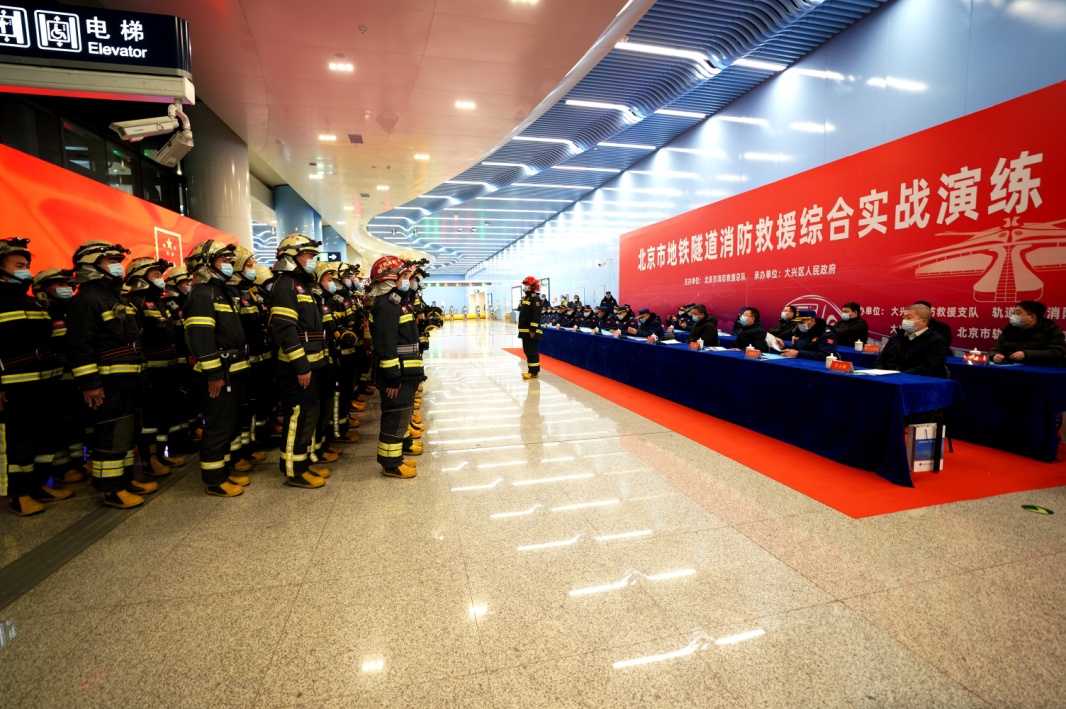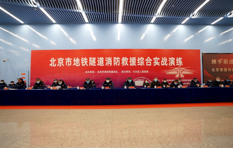 為全力做好2022年春運(yùn)服務(wù)保障工作,防范化解重大安全風(fēng)險(xiǎn),聚焦“全災(zāi)種、大應(yīng)急”救援需要和地鐵隧道火災(zāi)滅火救援處置能力。1月21日凌晨,北京市在北京地鐵大興機(jī)場(chǎng)線大興新城地鐵站組織開(kāi)展全要素地鐵隧道火災(zāi)滅火救援綜合實(shí)戰(zhàn)演練。演練模擬一列由大興新城地鐵站開(kāi)往草橋站的地鐵因動(dòng)力電機(jī)故障導(dǎo)致電氣線路起火燃燒,多節(jié)車(chē)廂起火,列車(chē)、隧道以及車(chē)站內(nèi)大量人員被困的情形。北京市消防救援總隊(duì)先后調(diào)集10個(gè)單位、52輛消防車(chē)、248名消防救援人員,以及市軌道運(yùn)營(yíng)管理公司、公安、交通、環(huán)衛(wèi)、醫(yī)療、氣象、微型消防站等區(qū)級(jí)社會(huì)聯(lián)動(dòng)力量200余人參演。