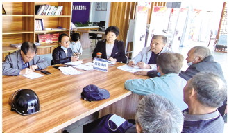 圖為楊立娟(左三)正在接待來訪群眾。