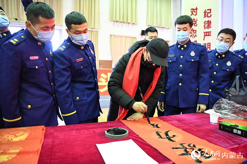 新春的腳步越來越近,內蒙古各地洋溢著喜慶的氛圍。近日,人民網內蒙古頻道攜手內蒙古美術館為內蒙古森林消防總隊特種救援大隊的戰(zhàn)士們寫春聯,為“藍朋友”們送上新春的祝福。