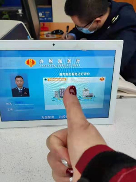 “大家都要向鵬宇學(xué)習(xí),辦理業(yè)務(wù)時(shí)要充滿耐心、細(xì)心,為每一位前來辦事的人員提供優(yōu)質(zhì)服務(wù)?!鄙衔?0:30,辦稅服務(wù)廳副主任周霞在微信工作群里發(fā)了一張來自繳費(fèi)人拍的照片--一個(gè)大拇指與程鵬宇評(píng)價(jià)窗口的合照。