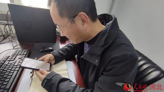 楊富強(qiáng)在臨城縣“百姓議事廳”的微信群里協(xié)調(diào)工作。 霍笑楠攝