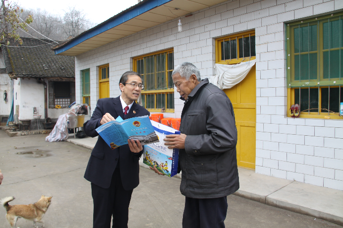 圖為富縣人民檢察院副檢察長趙忠韜入戶宣傳法律知識。