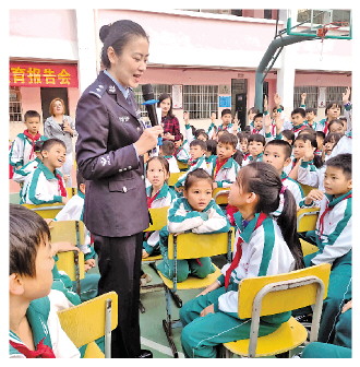 圖為李陽(yáng)進(jìn)校園進(jìn)行安全宣傳。