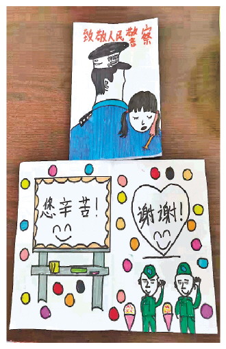 “致敬人民警察!”“您辛苦了,謝謝!”每次來(lái)到中小學(xué)校講課,李陽(yáng)都會(huì)收到一張張賀卡、明信片,上面寫滿了學(xué)生的心聲,或者畫著孩子們心中的警察形象。